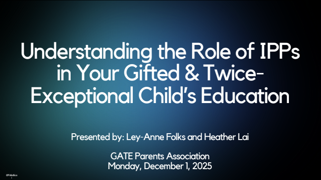 Our members have children who are currently enrolled in the GATE Program, which is a Special Education program designed to meet the unique, and often complex needs of learners who are academically gifted.